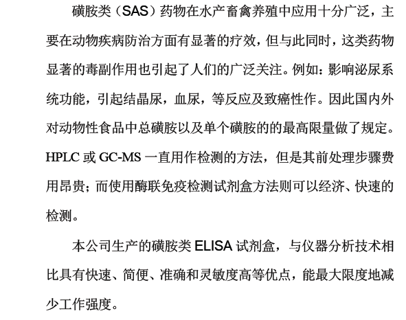 獸藥殘留試劑盒:磺胺ELISA試劑盒