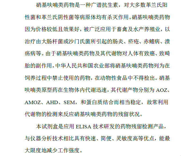 獸藥殘留試劑盒:呋喃唑酮ELISA試劑盒
